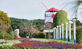 - 네덜란드 풍차 앞 정원: 컬러풀한 튤립 밭과 거대한 풍차가 인상적인 스폿