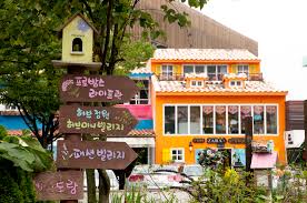 먼저 마을에 들어서면 가장 먼저 눈에 띄는 것은 형형색색의 유럽풍 건물들입니다. 입구부터 이어지는 예쁜 골목길은 인스타그램 감성을 자극하며, 작은 상점과 카페들이 양옆으로 이어져 걷는 재미를 더해줍니다. 특히 낮에는 밝고 경쾌한 느낌이, 해 질 무렵에는 조명과 어우러져 로맨틱한 분위기로 바뀌어 시간대별 매력이 뚜렷합니다. 대표적인 포토존으로는 자전거 벽화 앞, 노란 우체통 거리, 키 큰 꽃 조형물이 있는 정원 등이 있으며, 커플이나 가족 단위 방문객들에게 인기입니다.